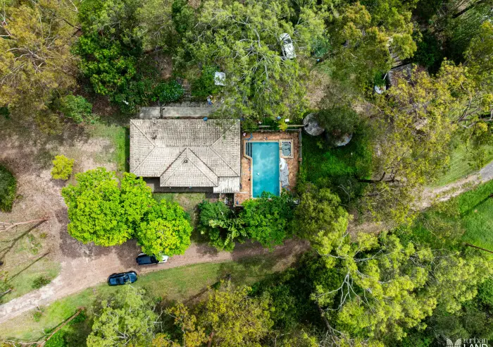 Surrounded by lush greenery and peaceful natural surroundings, the home features a warm, light-filled layout with a modern kitchen and comfortable living areas. Step outside to enjoy the swimming pool, perfect for family fun, entertaining, or relaxing in your own private oasis.