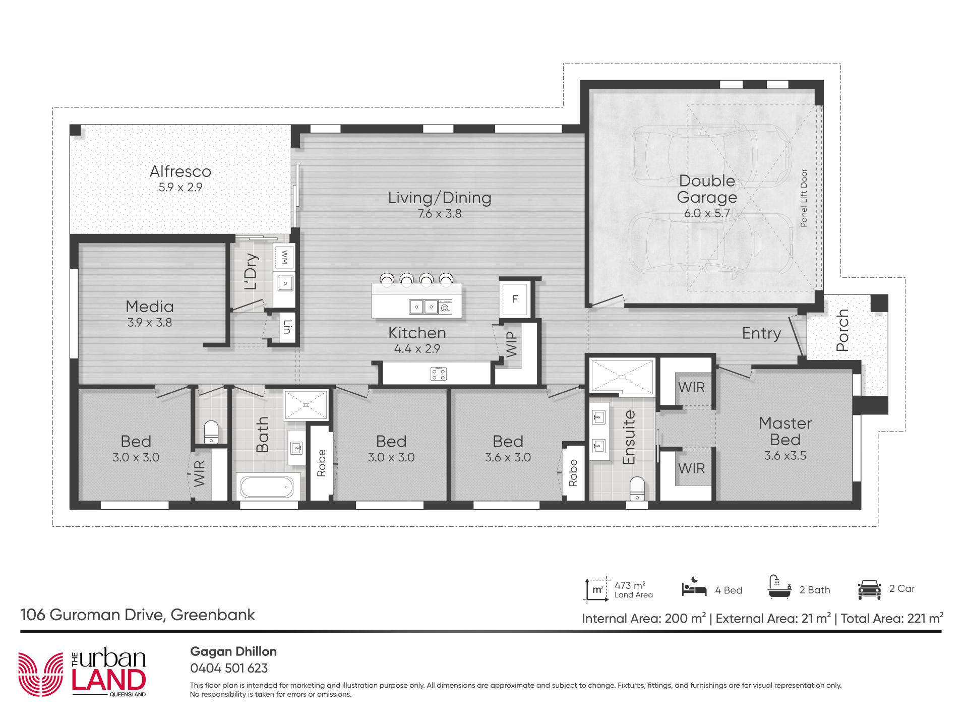 4 Beds 2 Baths 2 Cars 420 m2